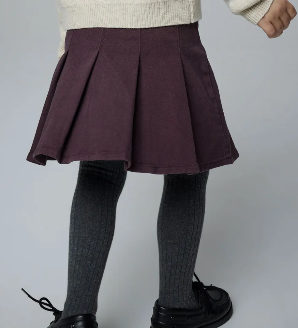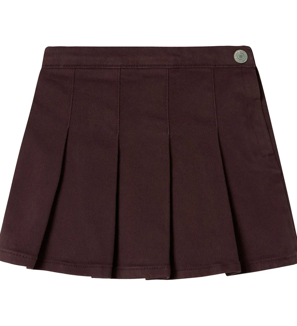 Smart Name It nederdel i mørkerød denim med lilla skær og et klassisk plisseret design. Name It nederdelen har en justerbar talje med knapper indvendigt. Den lukkes i venstre side med en hægte og lynlås.