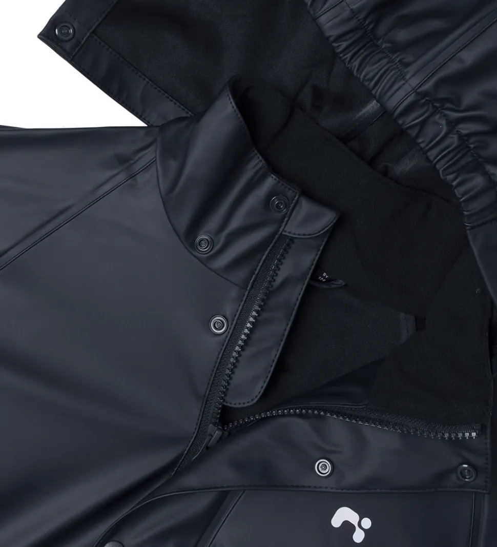 OBS: fra str. 110 (5 år) og opefter er regntøjet med regnbukser uden seler. Regnbukserne har i stedet en indvendigt justerbar elastikkant i livet.