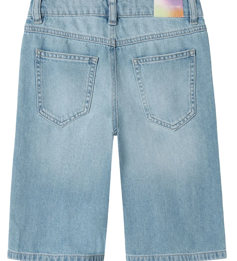 Flotte Name It shorts i en klassisk, lyseblå denimfarve med stilfulde slid-detaljer. Name It shortsene har en praktisk hægte- og lynlåslukning samt bæltestropper i taljen, hvilket giver et smart look.