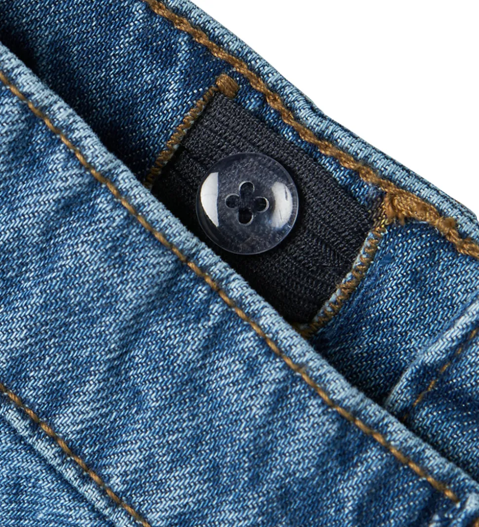 Name It shortsene har bæltestropper og indvendige, justerbare knapper i livet, som sikrer en god pasform. De åbnes på fronten med en trykknap. Shortsene har to forlommer og en møntlomme i højre side og to lommer bagpå.