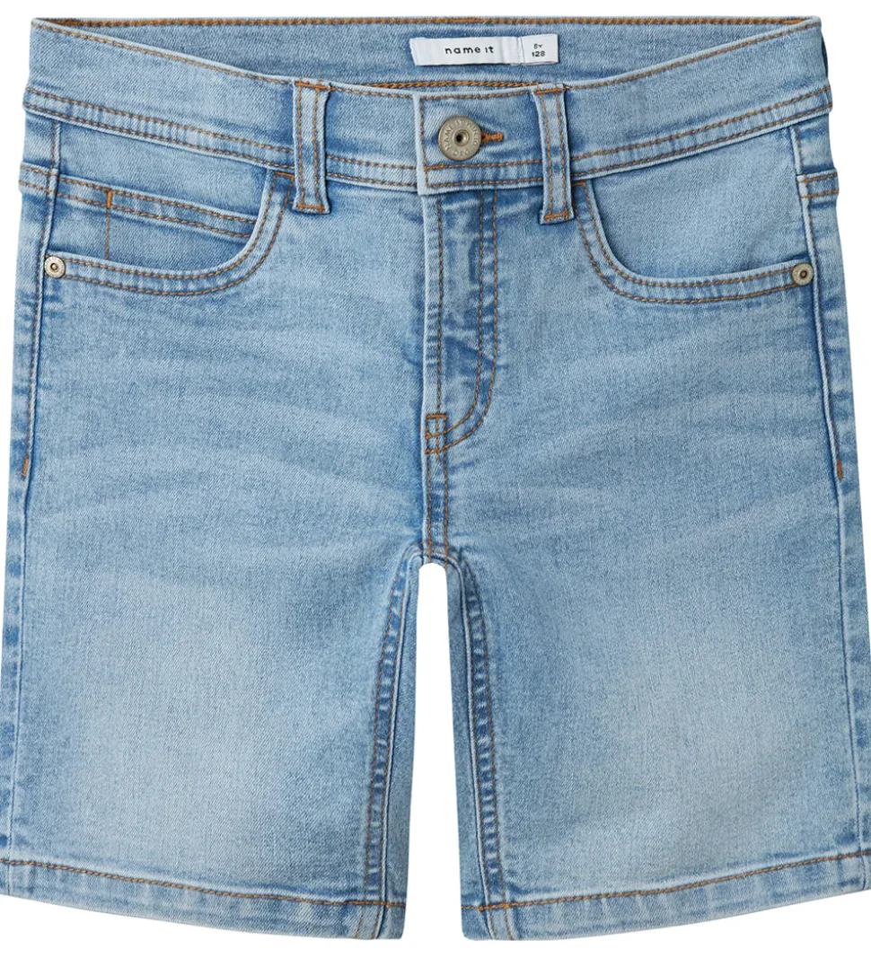 Stilfulde Name It shorts i lyseblå denim med en indvendigt, justerbar elastikkant i livet. Designet har klassiske lommer og åbnes med en hægte og lynlås foran. Name It skaber komfort og stil i en enkel pakke, ideel til hverdagens brug.