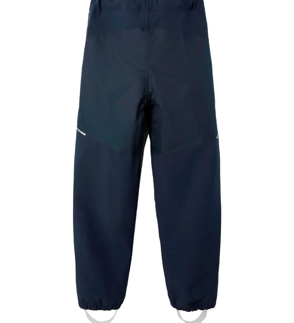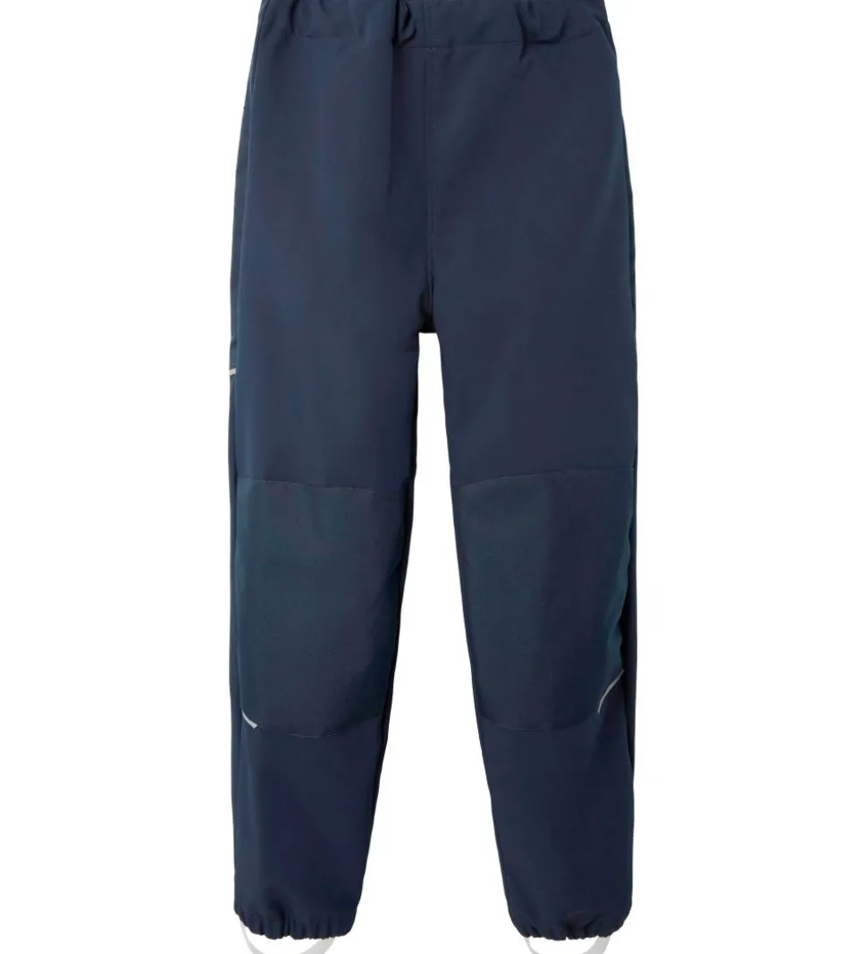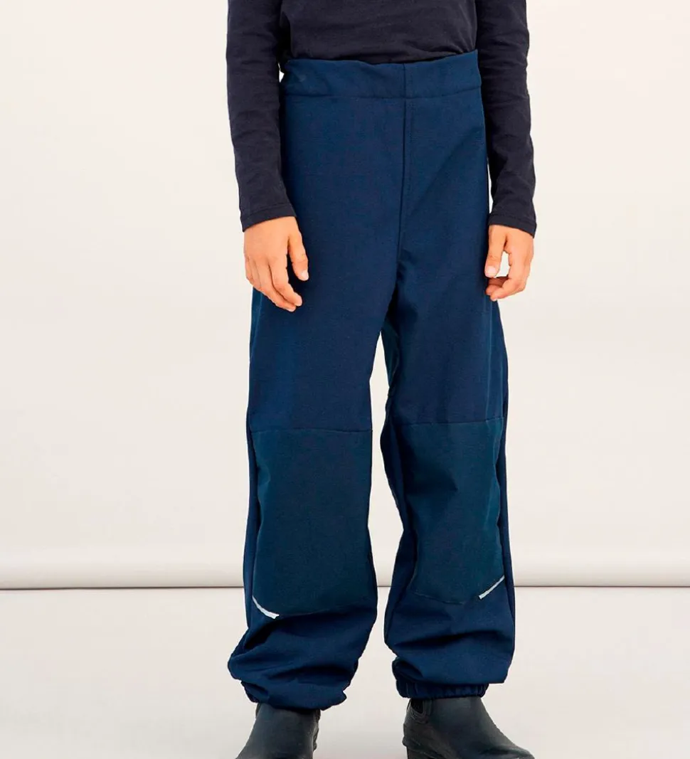 Smarte Name It softshellbukser i navy, med gode refleksdetaljer både fortil og bagpå.