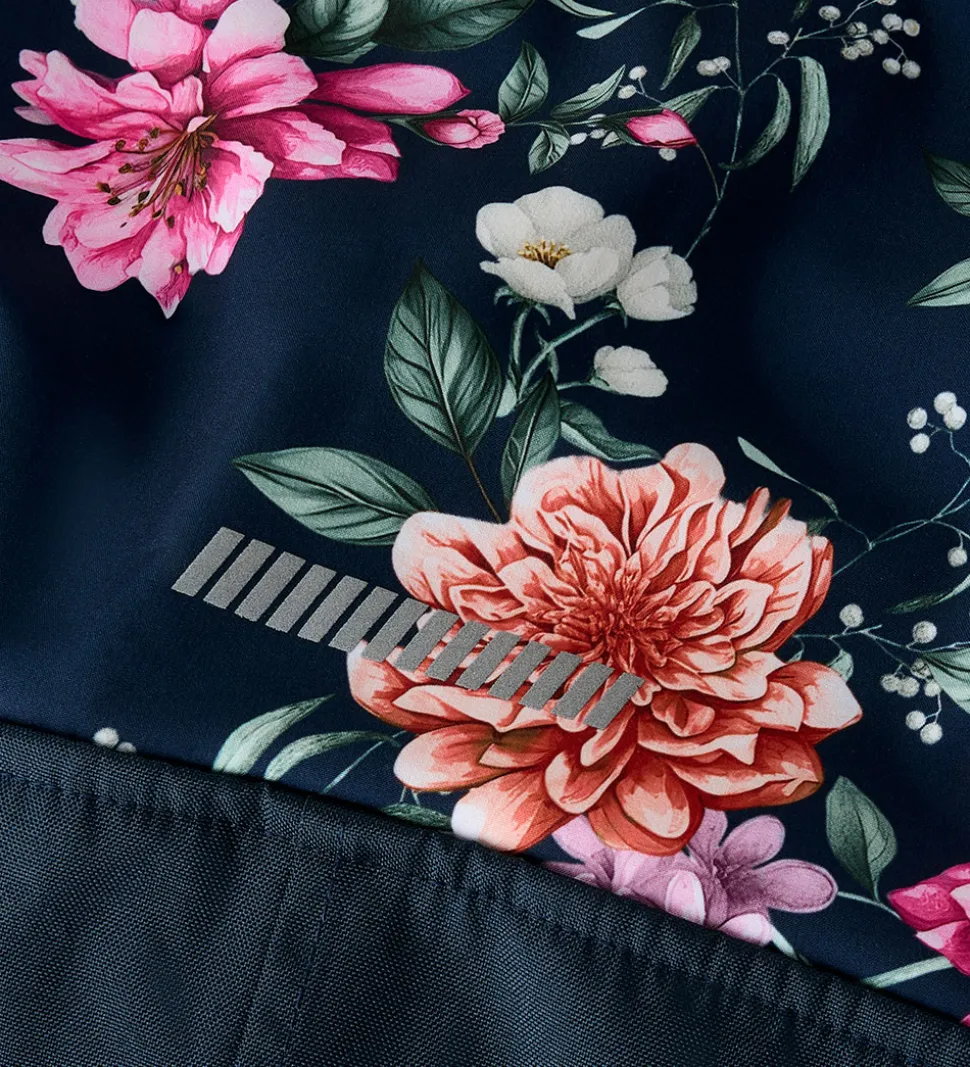 Dejlig Name It softshelldragt i navyblå med et farverig alloverblomsterprint.