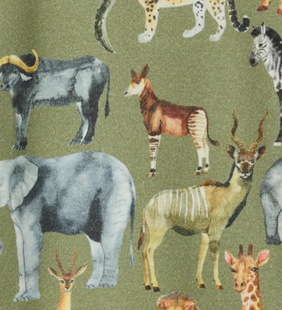 Skøn Name It sommerdragt i grøn med et allover print af forskellige afrikanske dyr.