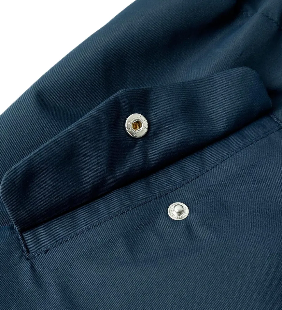 Sommerjakken åbnes fortil ved hjælp af en lynlås med hagebeskytter og udvendig og indvendig vindstolpe, hvor den udvendige lukkes med trykknapper. Den har to knaplommer på fronten.