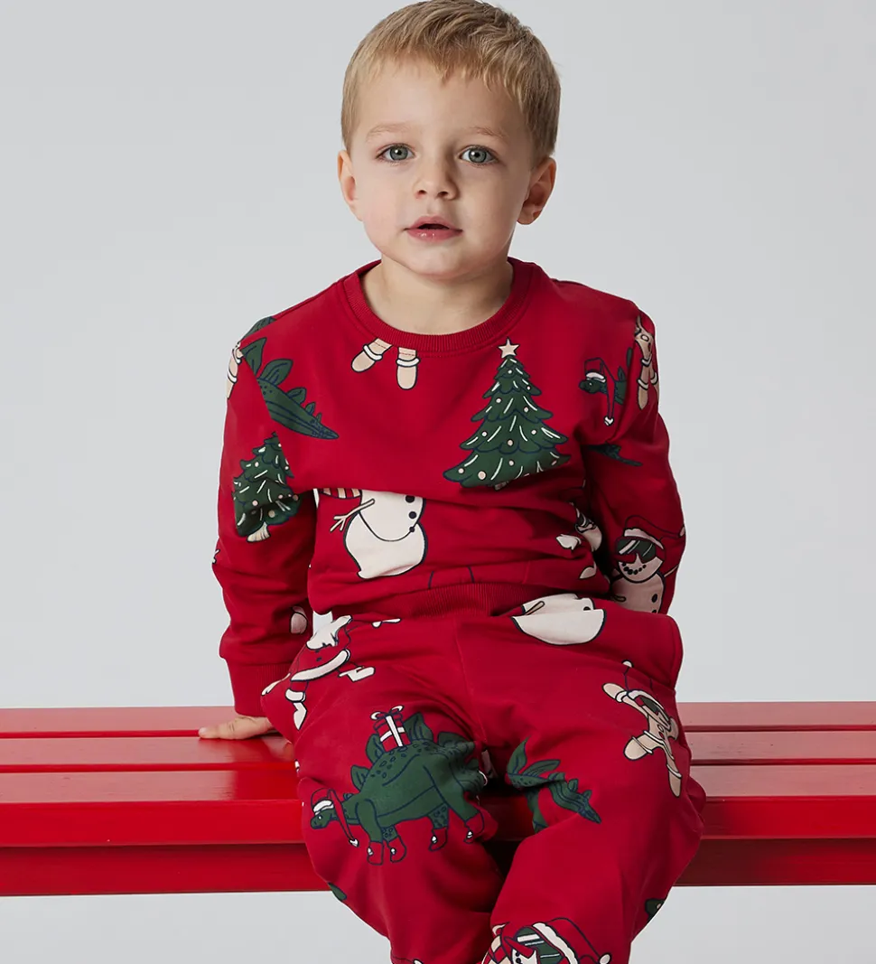 Charmerende Name It sweatshirt i en klar rød farve med print af seje julemotiver. Sweatshirten har en rund halsudskæring og lange ærmer med ribkanter. Indvendigt er der blødt, børstet bomuld.