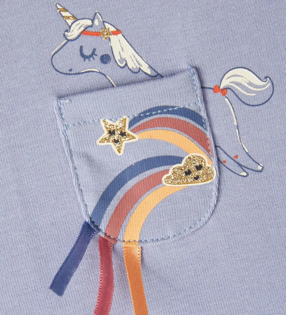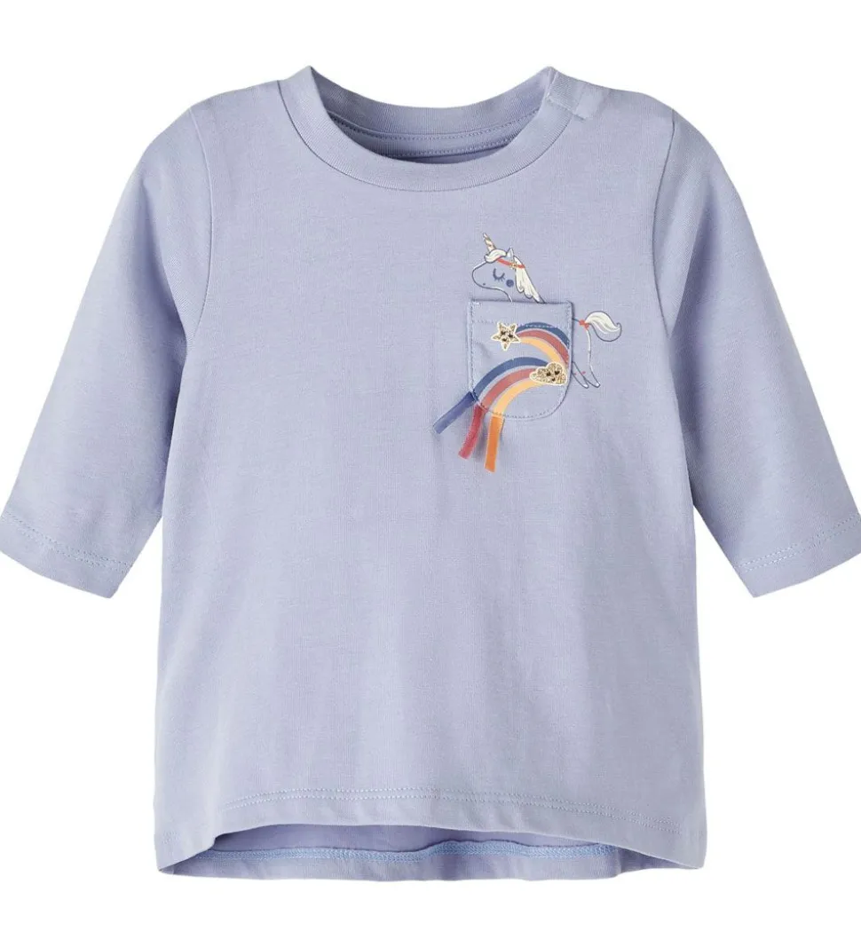 Sej Name It tunika i lilla med print af en enhjørning i venstre side.