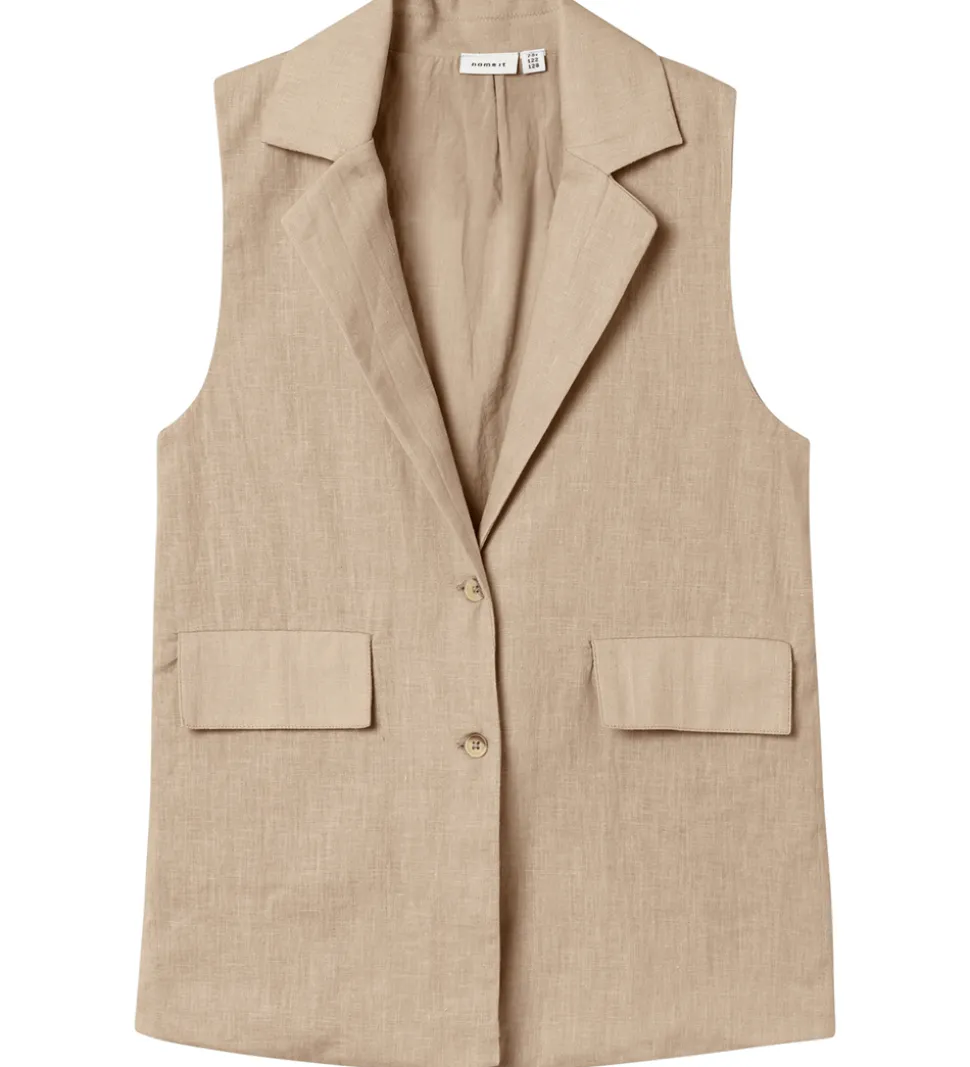 Model: NkfFalinnen Waistcoat, Style: 13227398, Farve: Humus