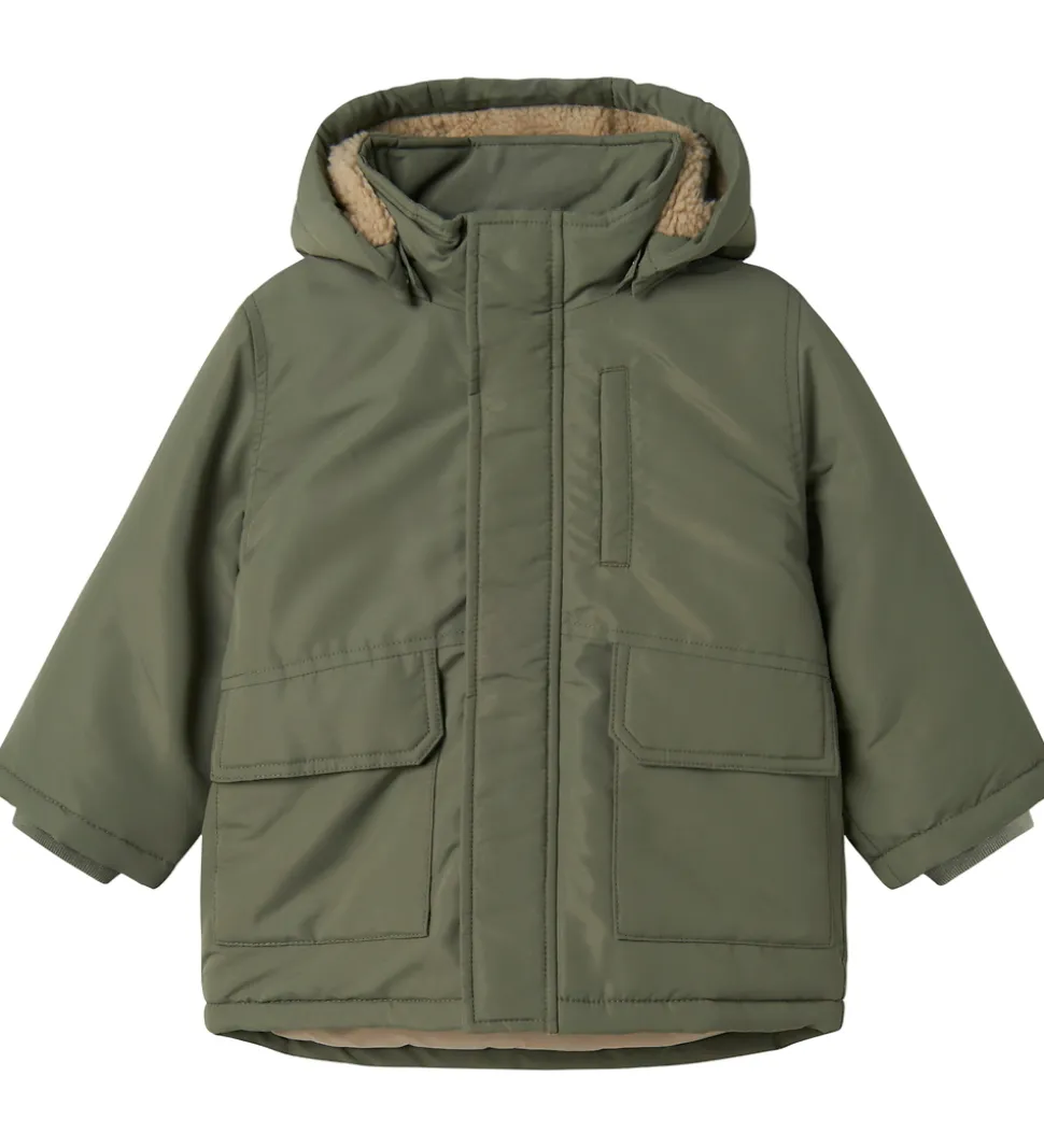 Flot Name It vinterjakke i ensfarvet armygrøn.