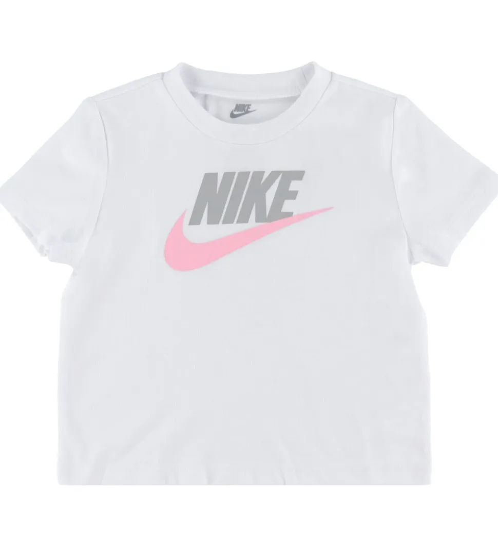 Nike cardiganen har en fast hætte og brede ribkanter, og den lukkes med en lynlås. Fortil er der praktiske lommer. Sweatpantsene har lange ben med brede ribkanter, og i livet er der en bred elastikkant. T-shirten har et klassisk snit med korte ærmer og en smal ribkant i halsåbningen.