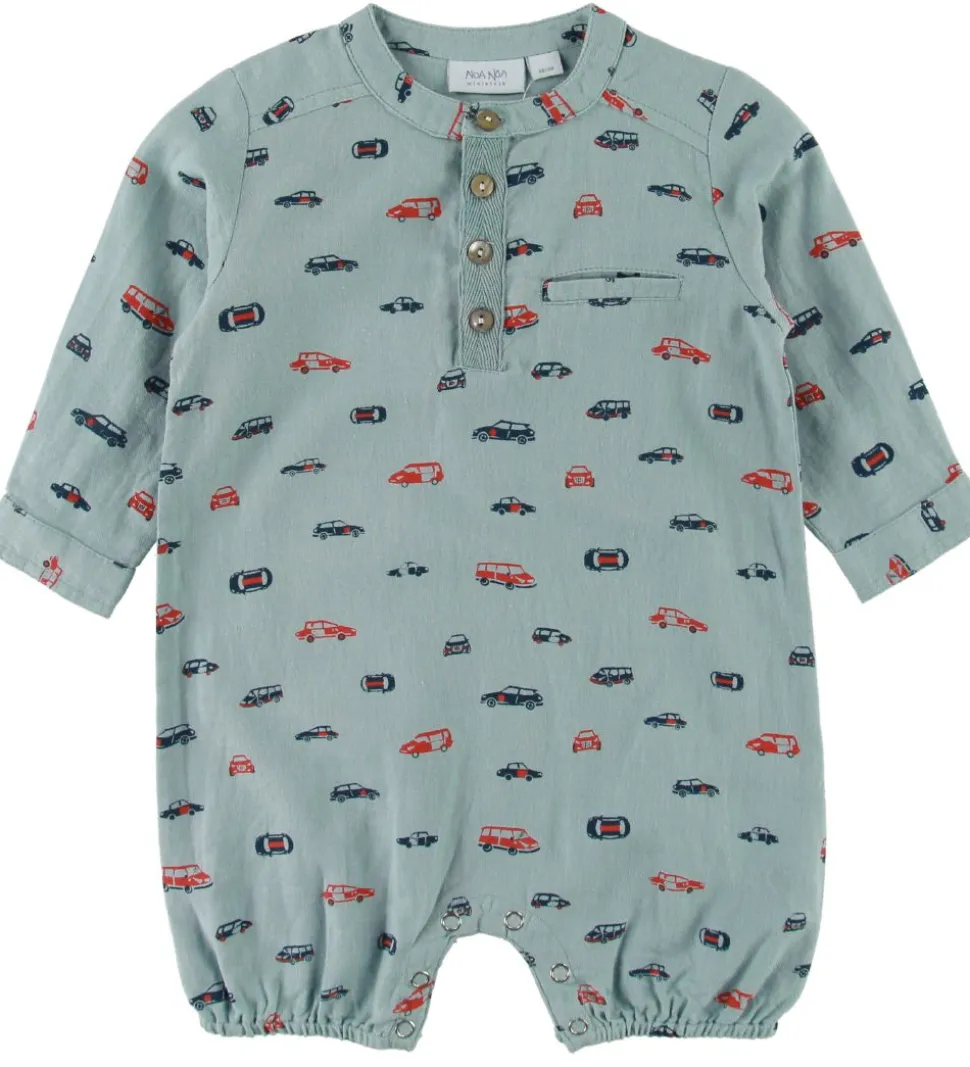 Smart Noa Noa miniature sommerdragt i lyseblå med et allover-print af røde og mørkeblå biler.