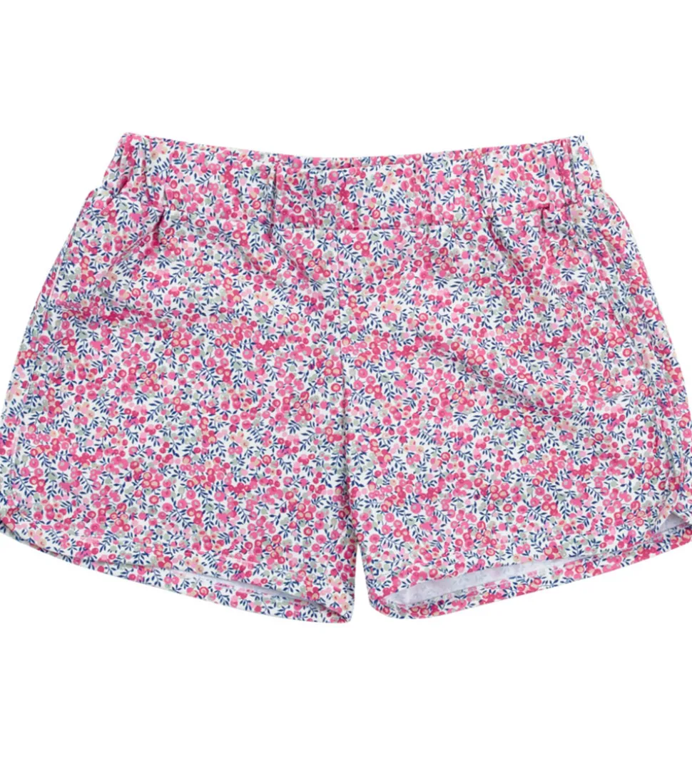 Skønne Petit Crabe badeshorts hvid med et allover print af små bær og blade i rosa nuancer.