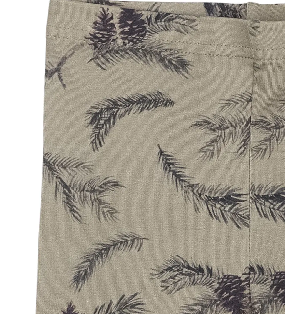 Stilfulde leggings fra Petit Piao i en behagelig grøn nuance med et smukt print af grankogler og grene. Petit Piao leggingsene har en elastisk kant i livet, der sikrer en god pasform.