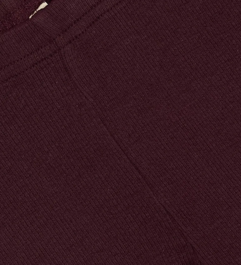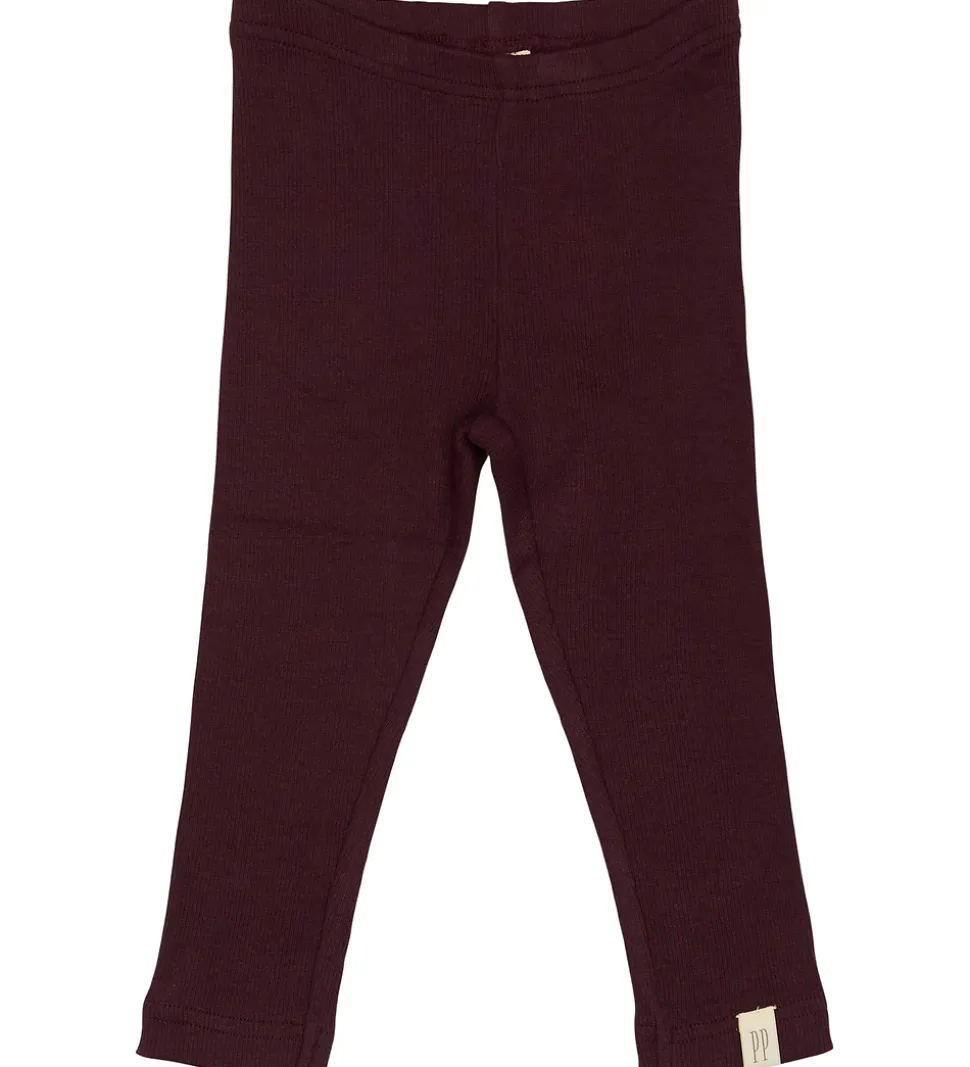Stilfulde Petit Piao leggings i en dyb bordeauxrød farve med en flot ribstruktur. Petit Piao leggingsene har elastik i taljen og et diskret mærke nederst på benet.