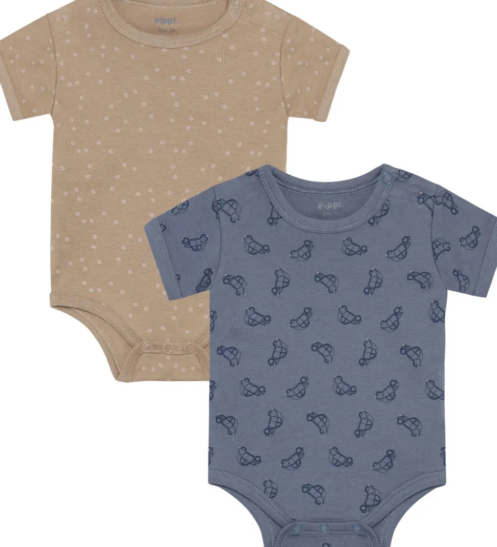 Skønne Pippi Baby bodyer solgt i en 4-pak med følgende designs: