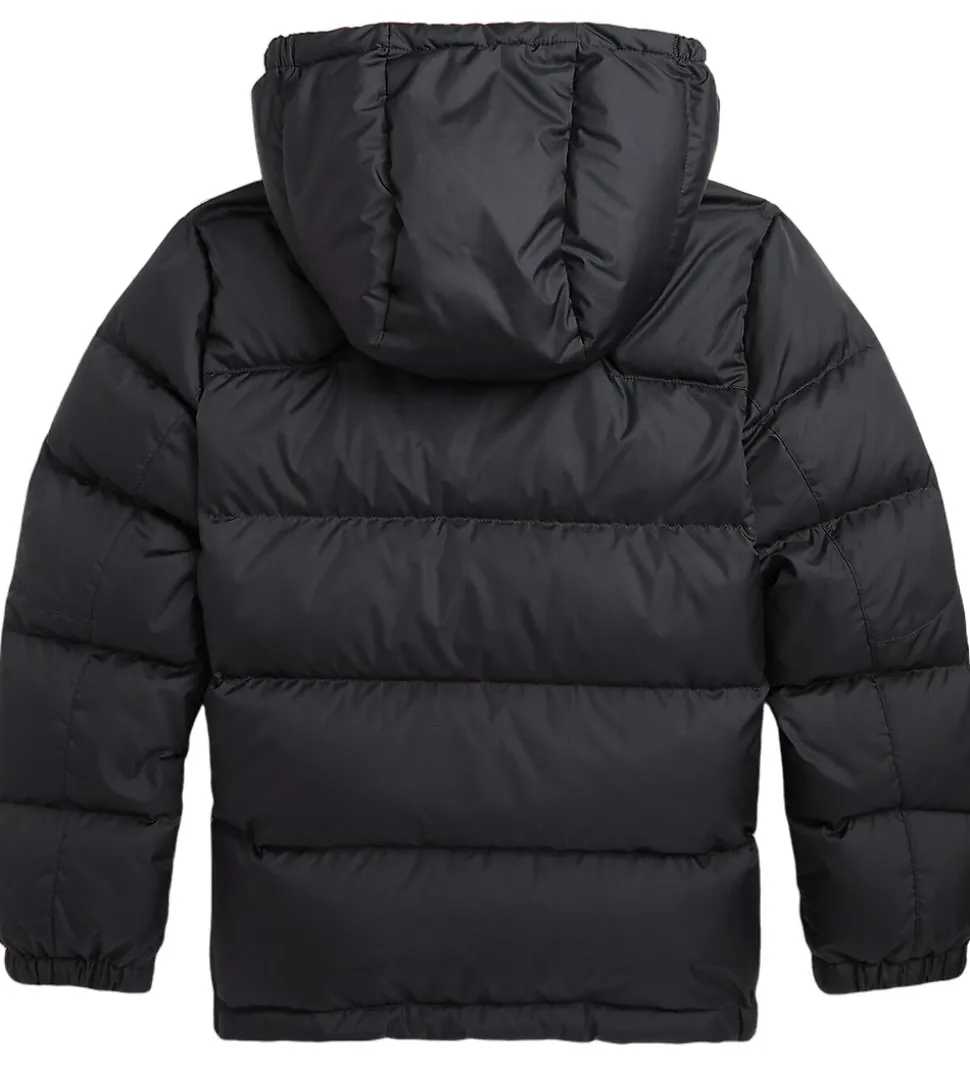 Smart Polo Ralph Lauren dunjakke i ensfarvet sort med et lille, rødt logo broderet i venstre side.
