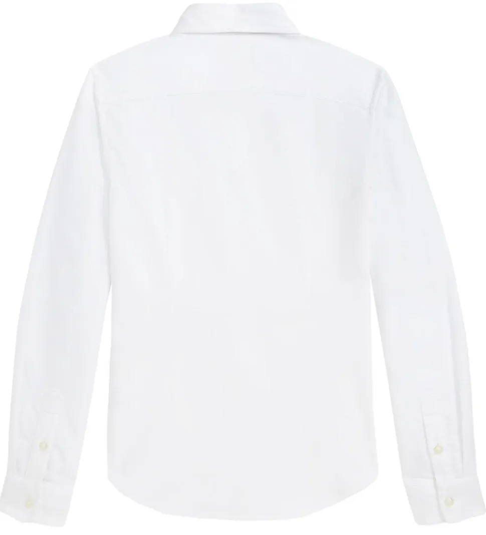 Flot Polo Ralph Lauren skjorte i ensfarvet hvid en fastvævet kvalitet, og i venstre side er der broderet et lille logo i brun, hvid og blå.