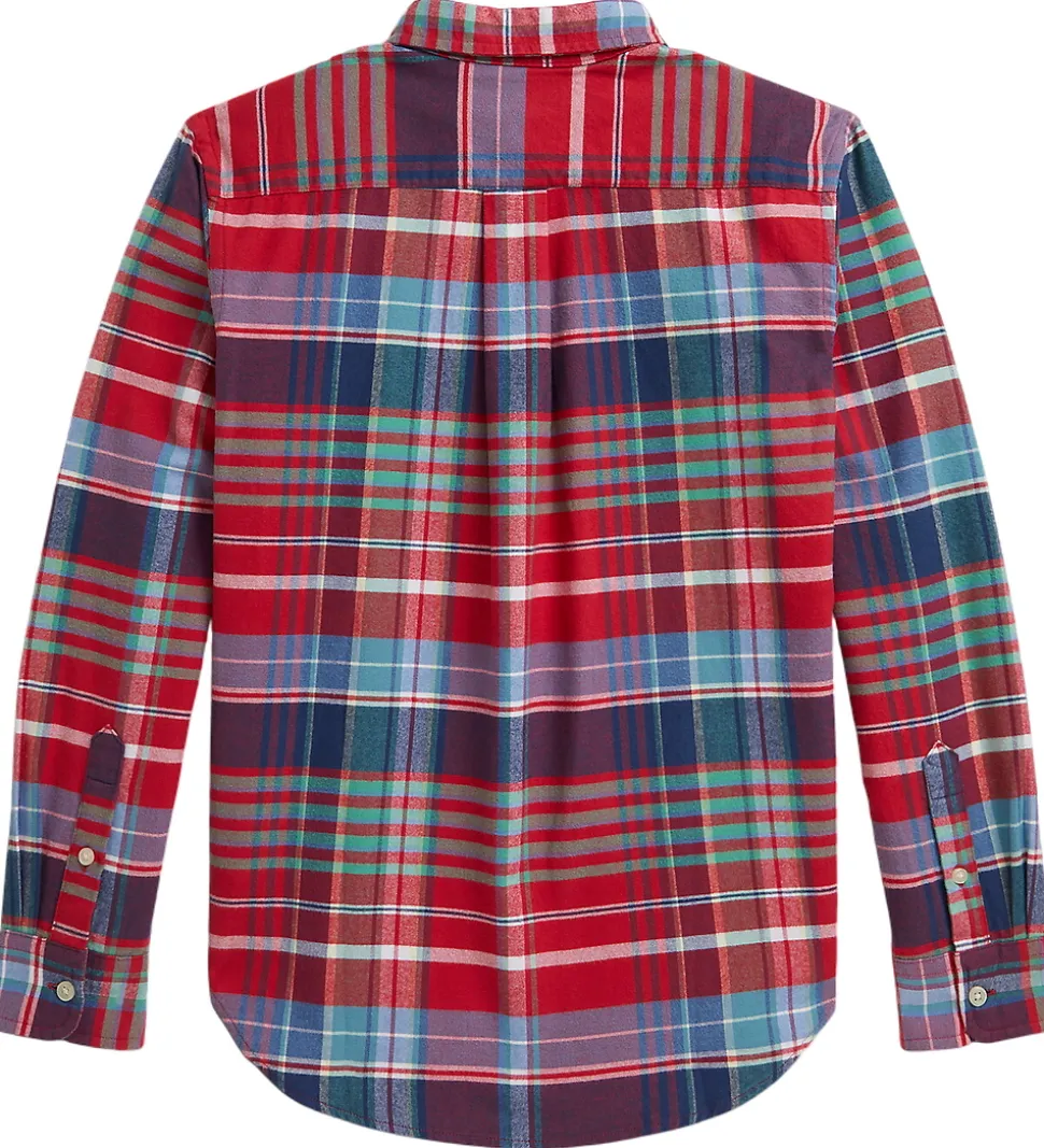Klassisk skjorte fra Polo Ralph Lauren med et tidløst ternet mønster i røde, blå og grønne nuancer. Skjorten har lange ærmer og en traditionel krave, der tilføjer et stilfuldt element. På brystet er et diskret logo, der fremhæver Polo Ralph Laurens varemærke.