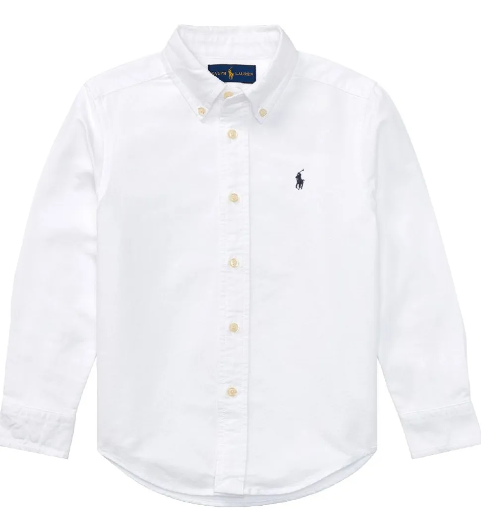 Polo Ralph Lauren skjorten har lange ærmer med brede kanter, der lukkes med to knapper. I halsåbningen er der en klassisk krave, hvor flipperne holdes på plads af en lille knap. Skjorten åbnes fortil med hvide knapper.