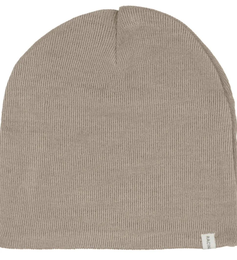 Lækker Racing Kids hue i lysebrun i en strikket kvalitet.