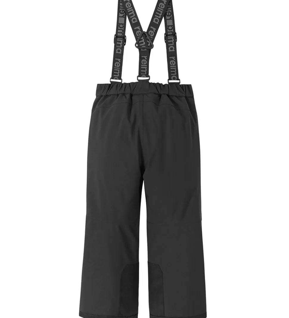 Reima skibukserne har forstærkninger på buksebenene, og der er praktiske snefang med en smal elastikkant med gummibelægning på indersiden. Det yderste lag af buksebenet kan fæstnes til snefanget med en trykknap, så det ikke glider op. Nederst langs siderne af buksebenene er der smalle refleksstriber.