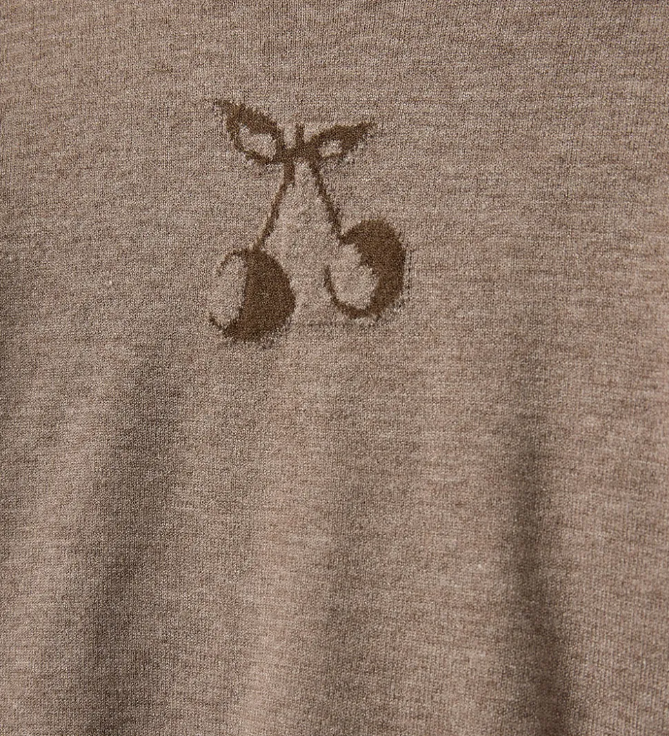 Blusen prydes af et diskret kirsebærmotiv centralt placeret på fronten. Den er designet med lange ærmer og har en klassisk rund halsudskæring. Ribkanter ved hals, ærmer og bund giver blusens design et tidløst udtryk. Sofie Schnoor skaber her en stilfuld bluse, der kombinerer enkelthed med subtile detaljer.