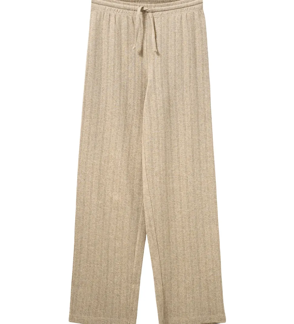 Sofie Schnoor bukserne er designet med en elastisk talje, der inkluderer praktiske snører for optimal justering. Den lige pasform sikrer en behagelig stil, mens buksekantens enkle afslutning fremhæver det tidløse design uden yderligere detaljer.