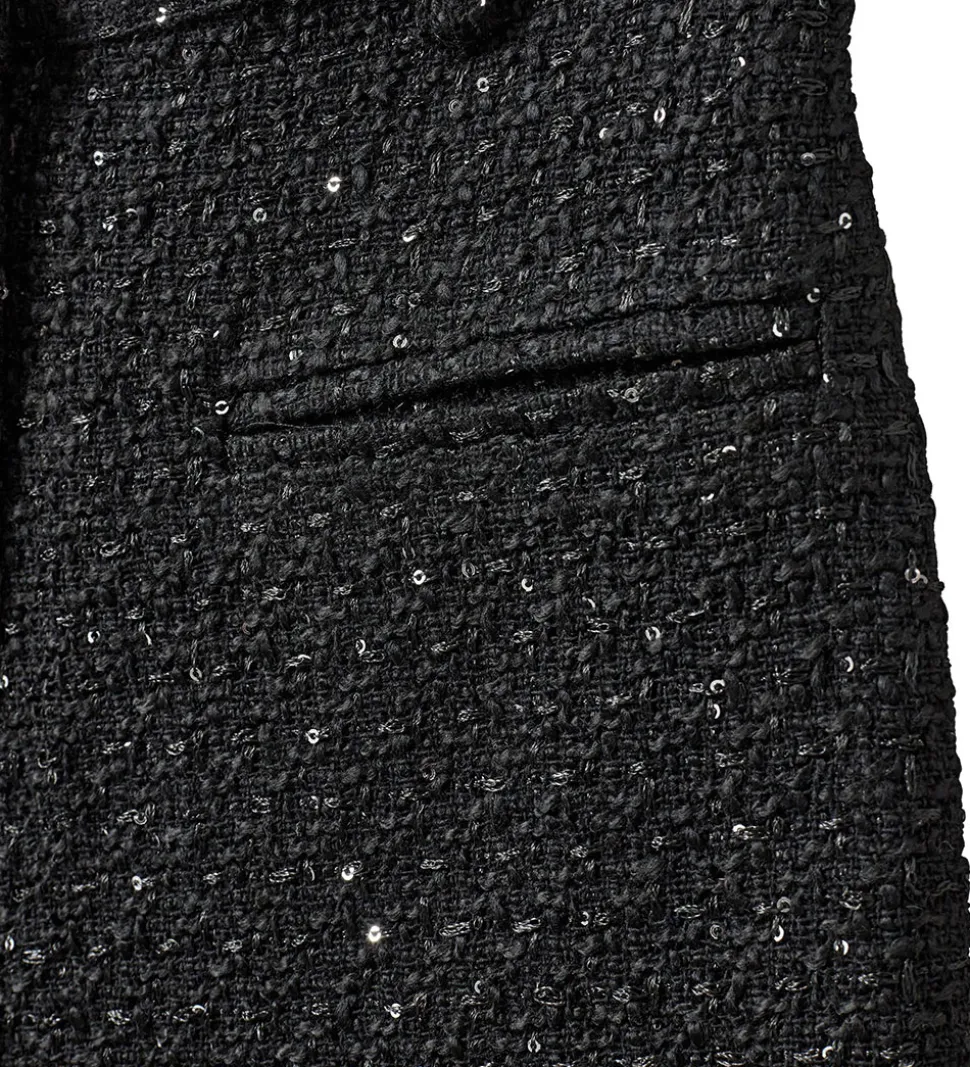 Lækker Sofie Schnoor nederdel i sort med glitrende palietter, der tilføjer et festligt touch. Nederdelen åbnes fortil med hægte og lynlås.