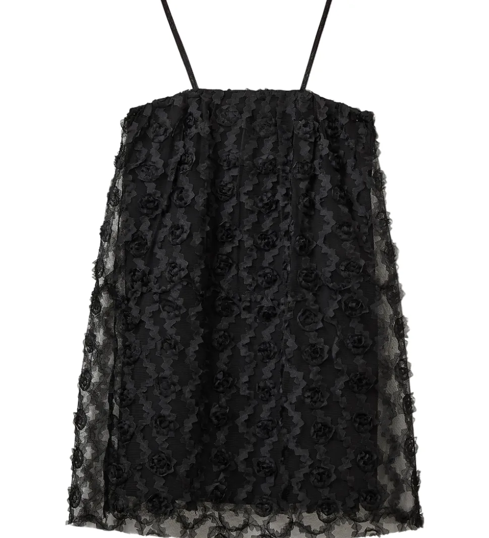 Elegant Sofie Schnoor tylkjole i sort tyl med en praktisk inderkjole, så kjolen ikke fremstår gennemsigtig.