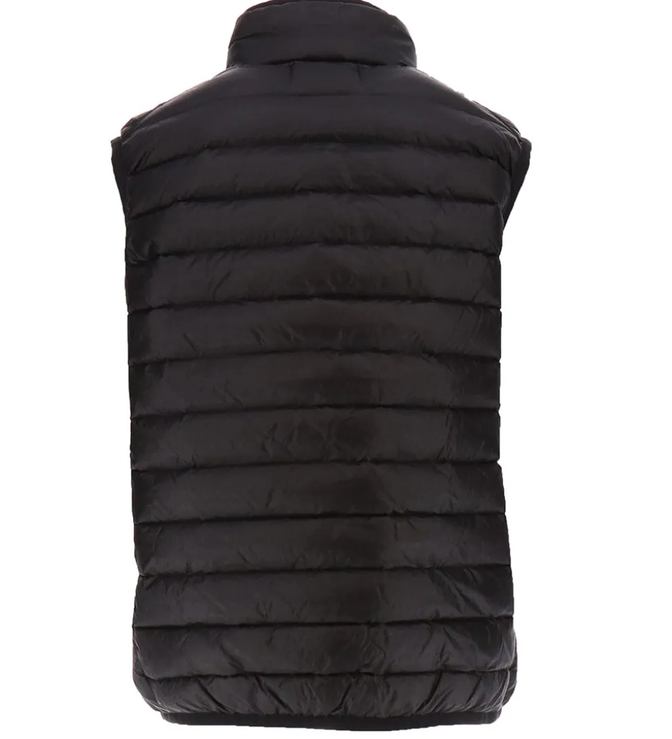 Flot Stone Island dunvest i ensfarvet sort. Dunvesten er lavet i glatvævet polyamid med vandrette syninger.