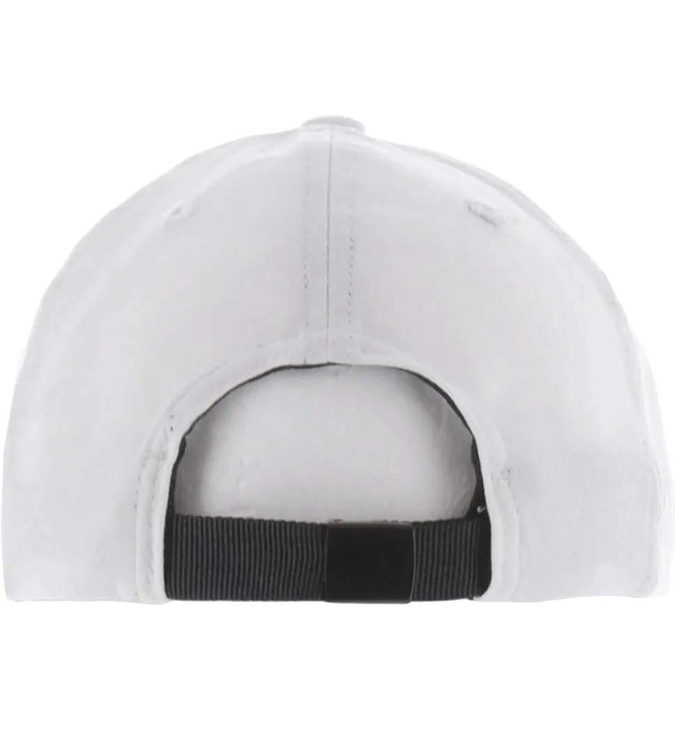Fin Stone Island kasket i ensfarvet hvid, og fortil er der broderet et stort logo.