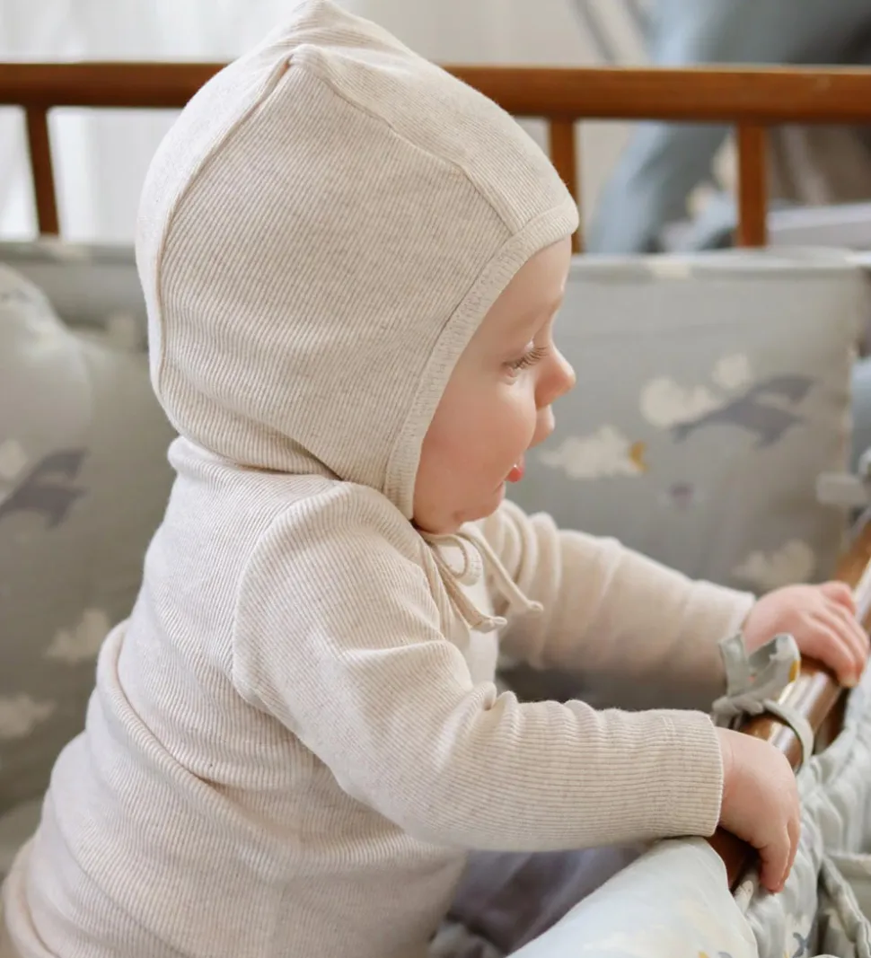 Smart That’s Mine babyhjelm i en beige ribstruktur.