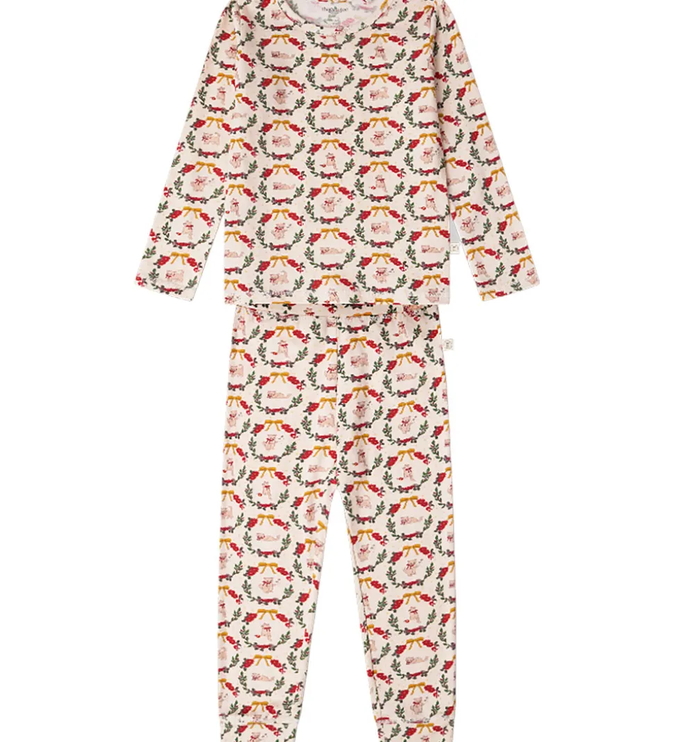 Charmerende Thats Mine nattøj med lange ærmer i en cremefarvet base, dekoreret med et farverigt print med juletema. Thats Mine nattøjet kombinerer komfort med et festligt design, der skaber glæde.
