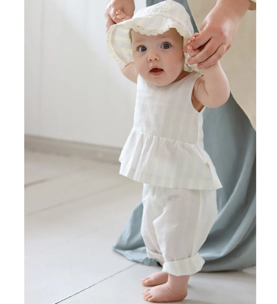 Fin That’s Mine Top i hvid med lyseblå striber.