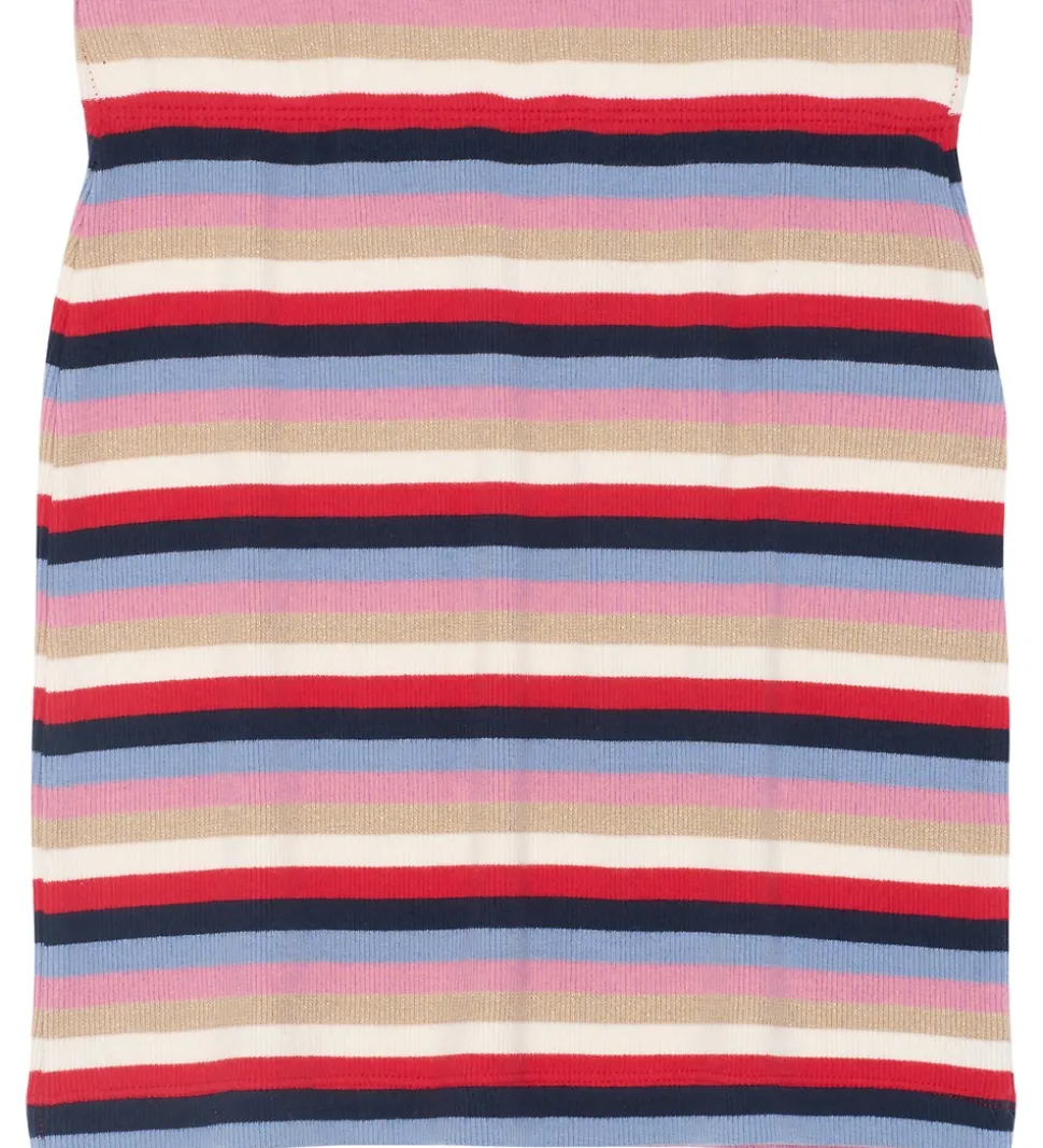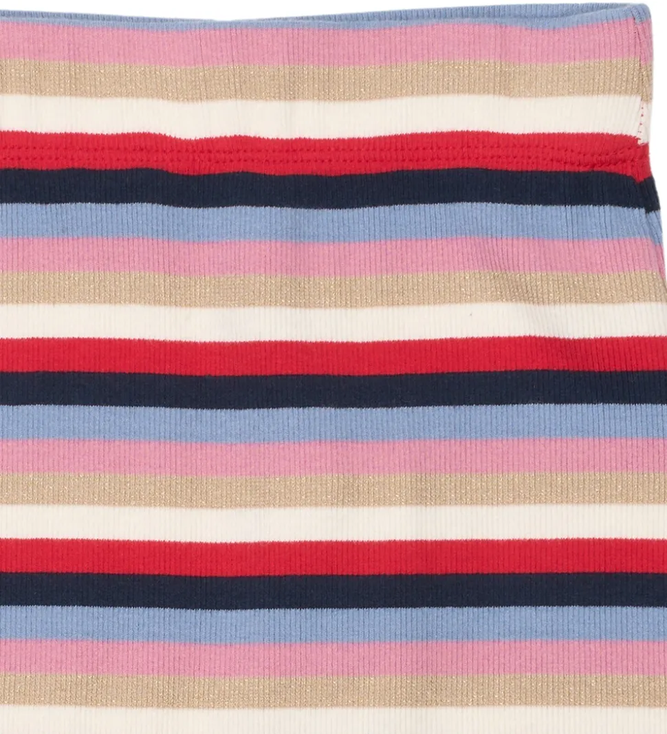 Flot The New nederdel med vandrette striber i forskellige farver inklusiv rød, blå og beige.