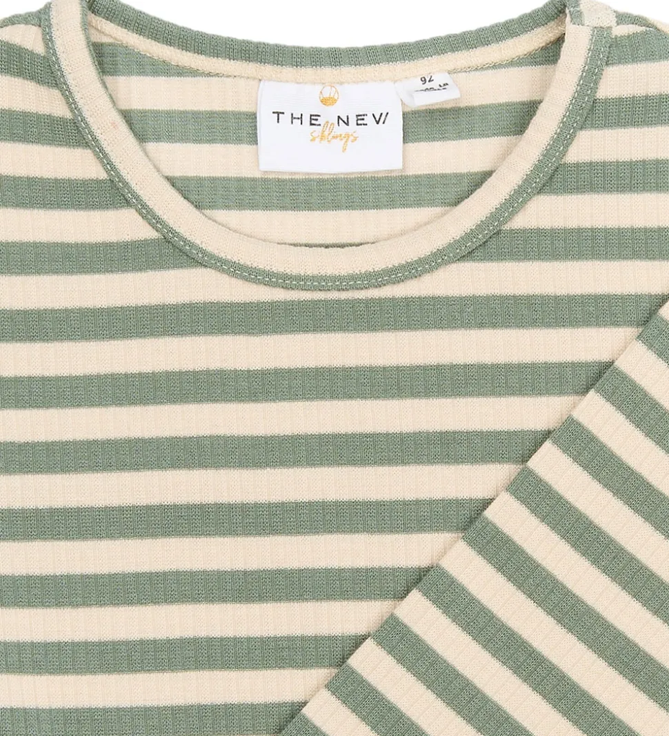 Charmerende bluse fra The New Siblings med et klassisk, stribet design i grøn og hvid, og med en lækker ribstruktur. Blusen har lange ærmer og en rund halsudskæring, som giver en elegant finish. The New Siblings bluse er en stilren tilføjelse til garderoben.