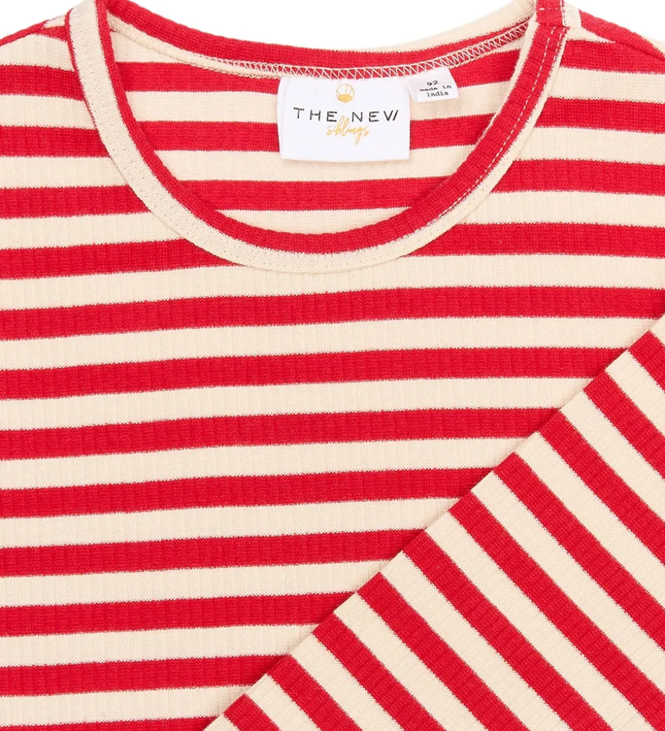 Blusen fremstår i røde og hvide nuancer, der giver et tidløst udtryk. Den runde halsudskæring understreger blusens enkelhed. Stoffet har en let ribbet struktur, som tilføjer dimension til designet. The New Siblings sikrer et stilfuldt valg til garderoben.