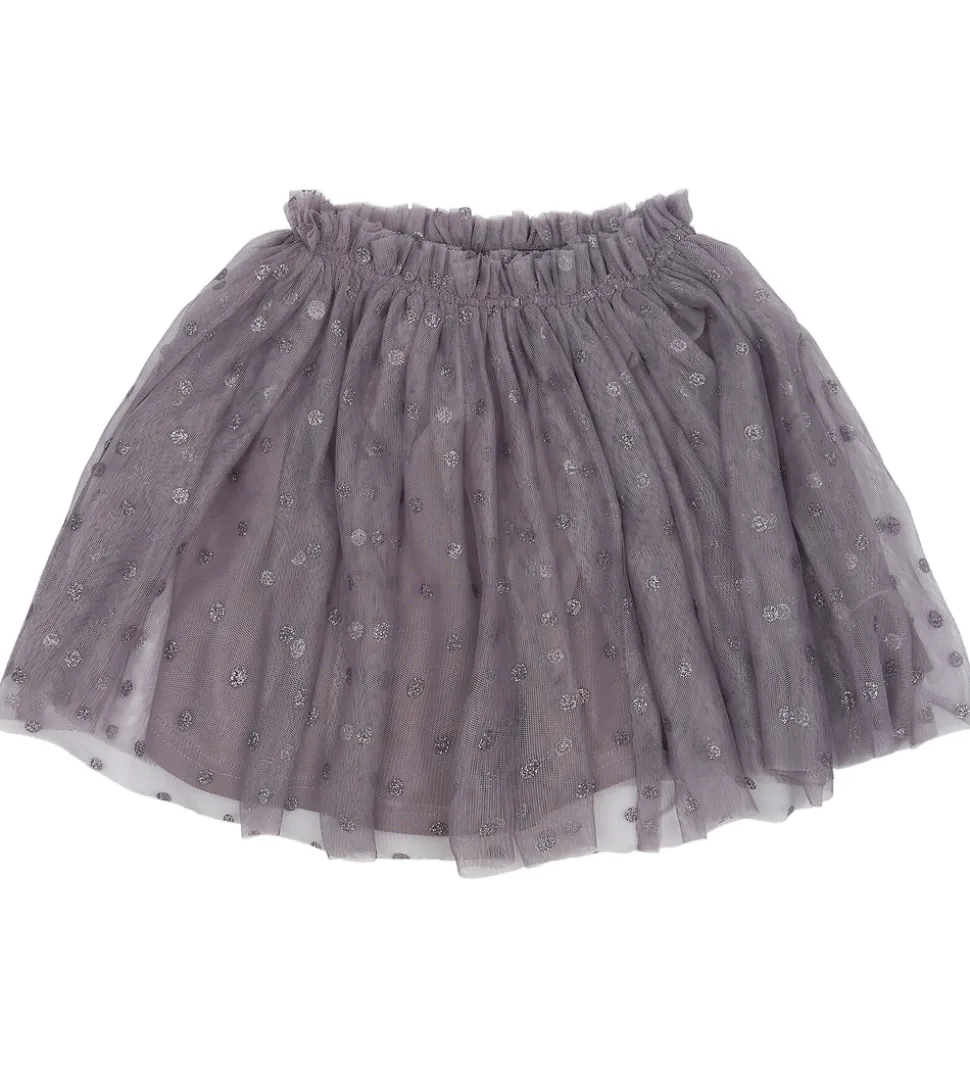 Yndig nederdel fra The New Siblings i støvet lilla tyl og med små sølvglimmer smileys over det hele. The New Siblings nederdelen har en elastisk talje, som sikrer en god pasform og har desuden et blødt og glatvævet underskørt, så den ikke fremstår gennemsigtig.
