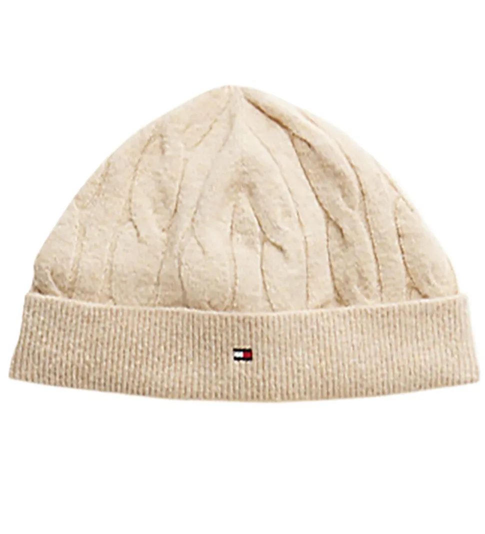 Elegant Tommy Hilfiger gaveæske med et sæt, der består af en bluse, et par bukser og en hue i ensfarvet brun i en strikket kvalitet med et flot, snoet mønster.