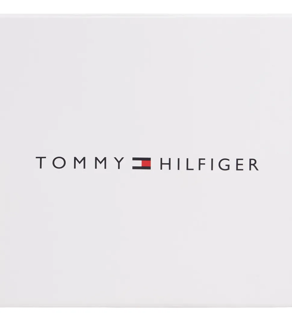 Stilfulde bodyer fra Tommy Hilfiger solgt i en 3-pak og leveret i en flot gaveæske. Den ene body er navyblå med hvide striber, den anden er ensfarvet hvid, og den tredje er navyblå med et stort, rødt T print foran. Alle har lange ærmer. Tommy Hilfiger bodyerne har en praktiske foldeskuldre og tre trykknapper i bunden for nem påklædning.