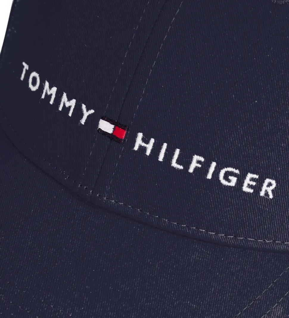 Tommy Hilfiger kasketten har en buet skygge, og den justeres i nakken med en velcrorem.