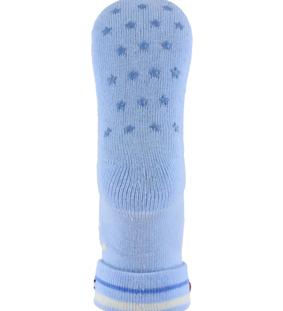 Strømperne har stjerneformede silikonedutter under fødderne, som giver et godt fodfæste.