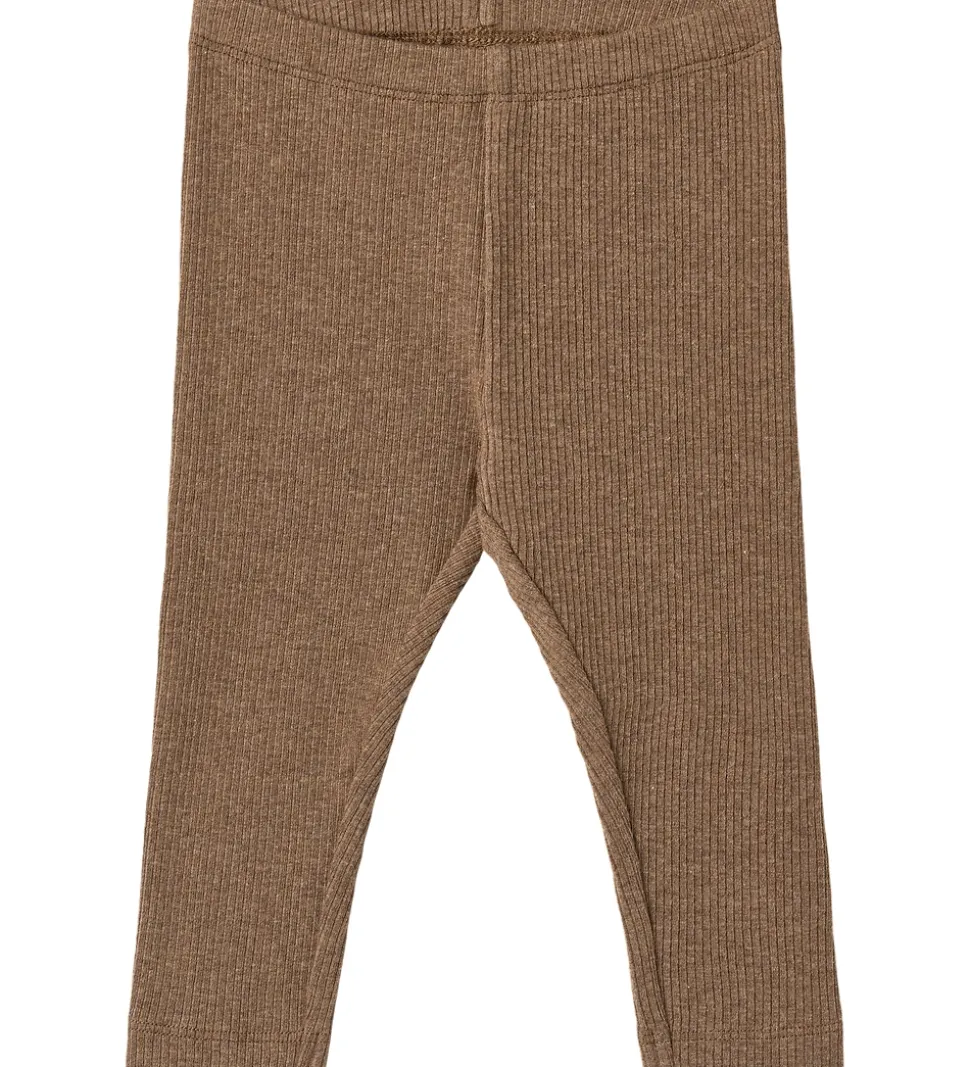 Stilrene Wheat leggings i en varm brunmeleret nuance og dejlig ribstruktur. Wheat leggingsene har en elastisk talje, der sikrer en god pasform.