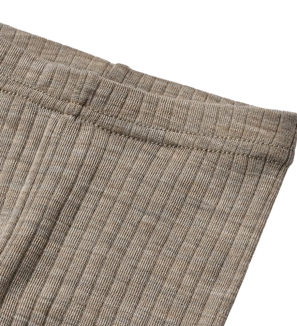 Behagelige Wheat leggings i en meleret beige nuance med ribstruktur. Klassisk design fra Wheat giver et tidløst look, perfekt til enhver garderobe. De enkle linjer og den alsidige farve gør dem nemme at matche.