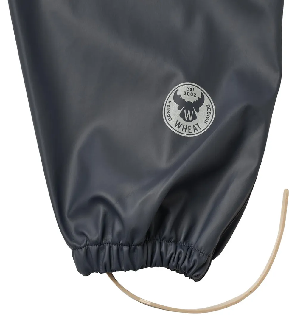 Fine Wheat regnbukser med seler af PU i navyblå.