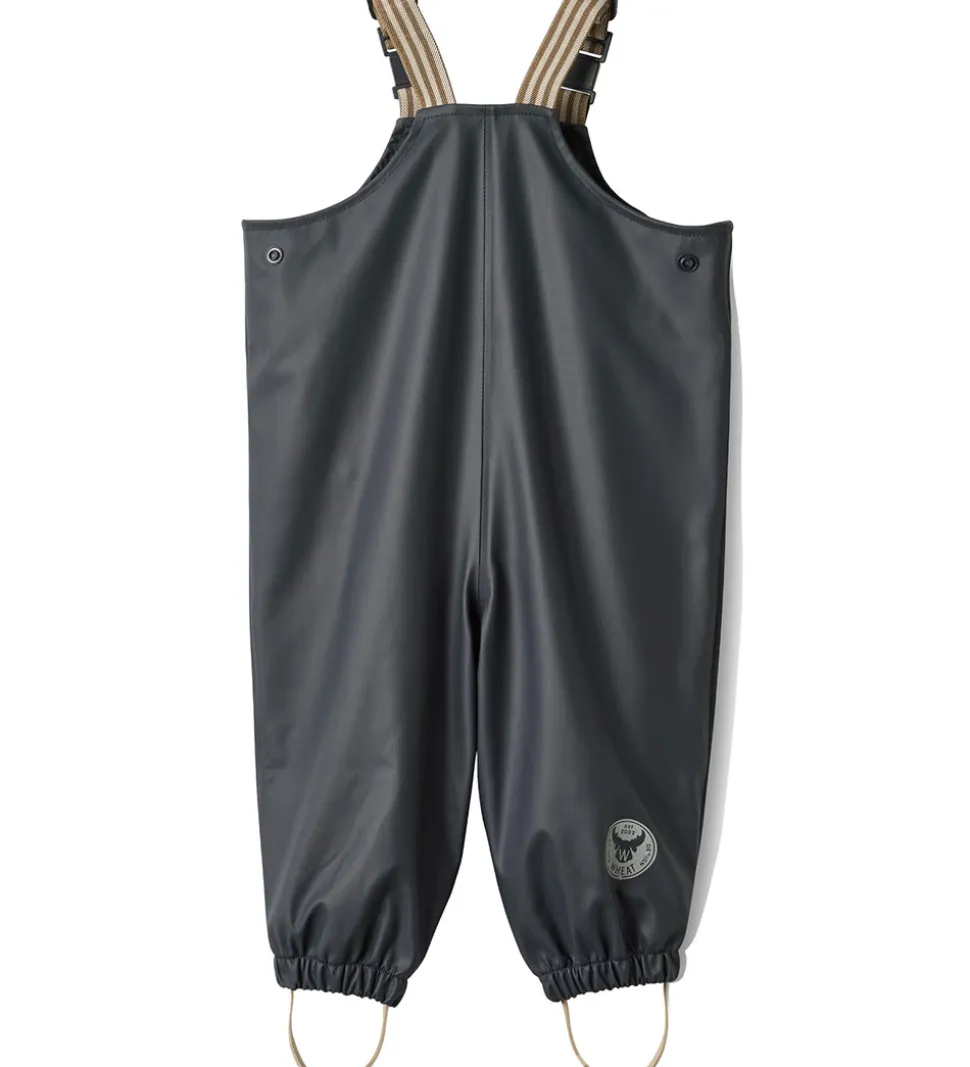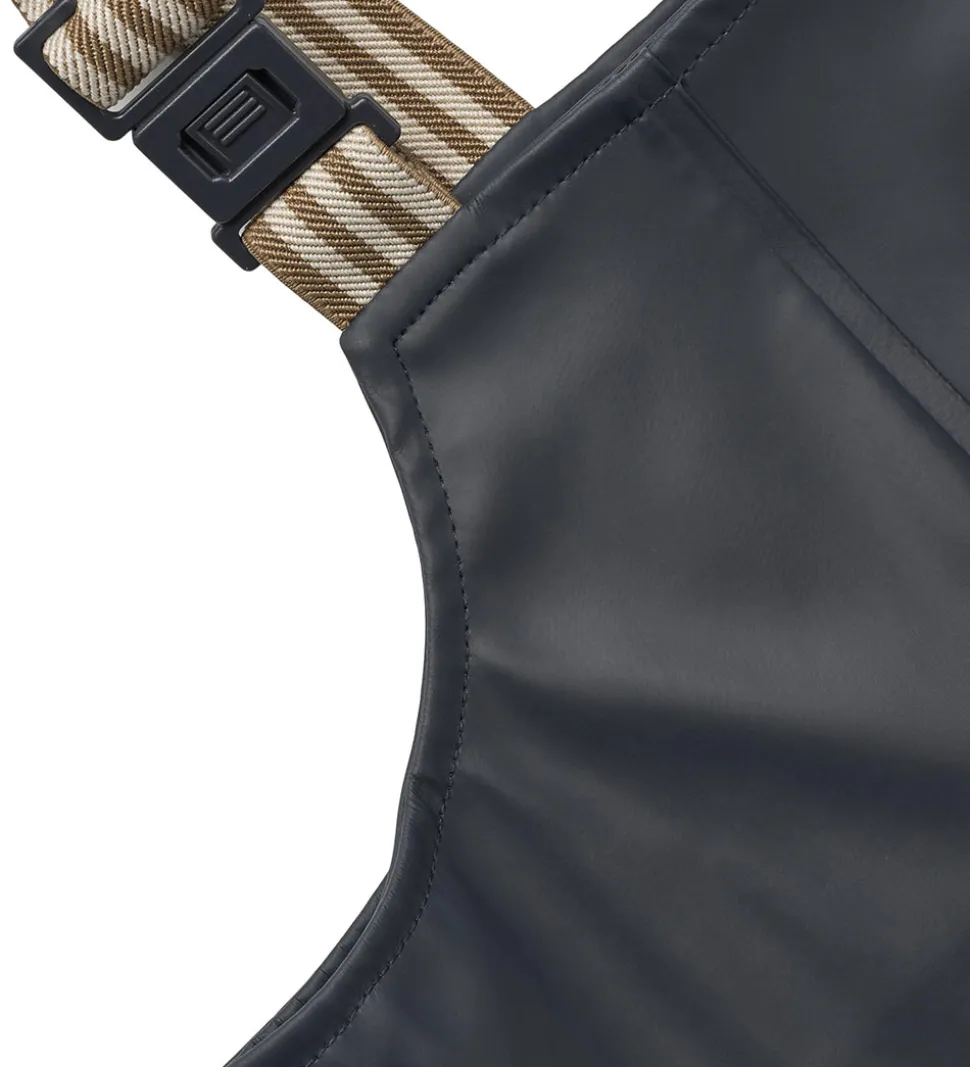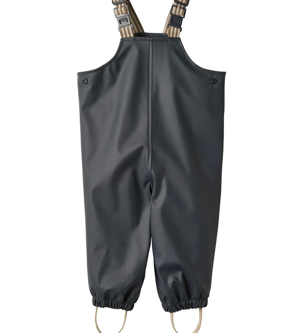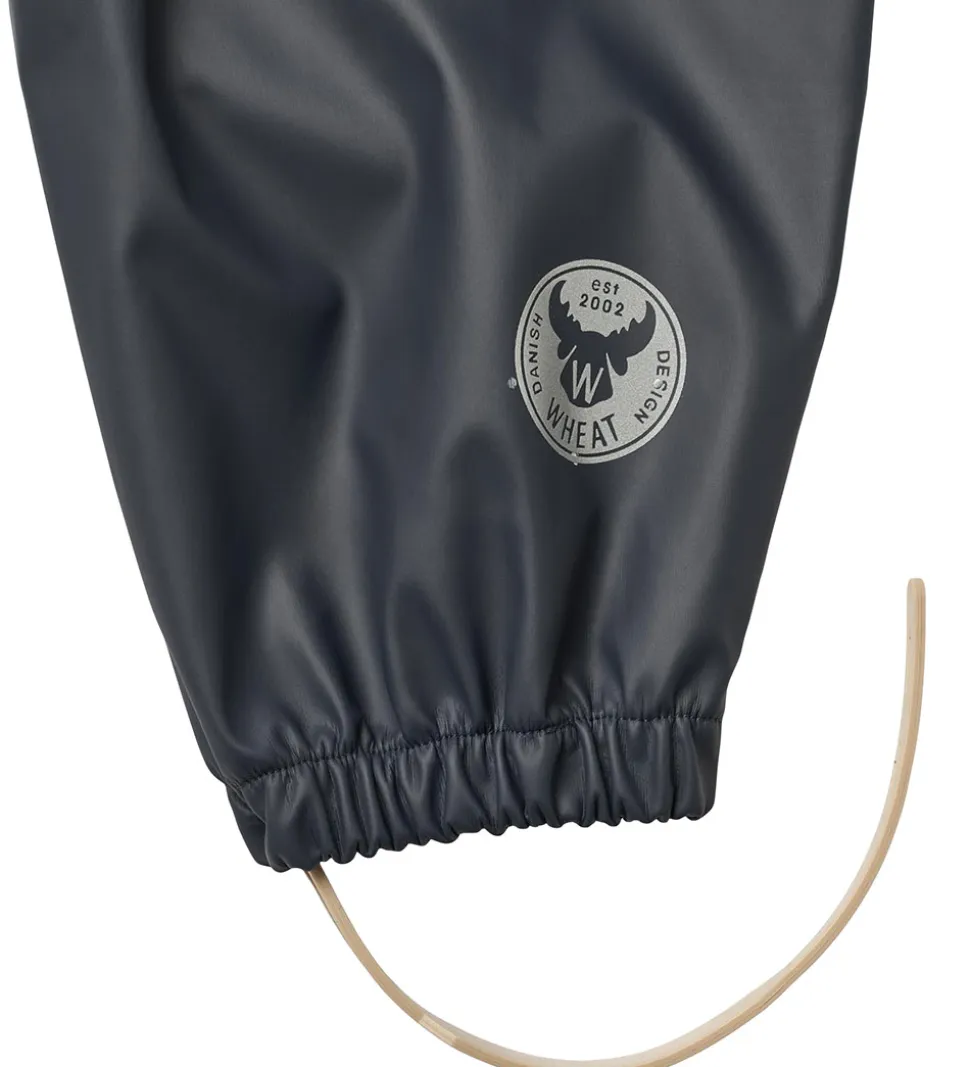 Fine Wheat regnbukser med seler af PU i navyblå.