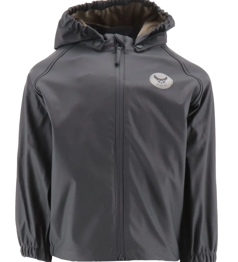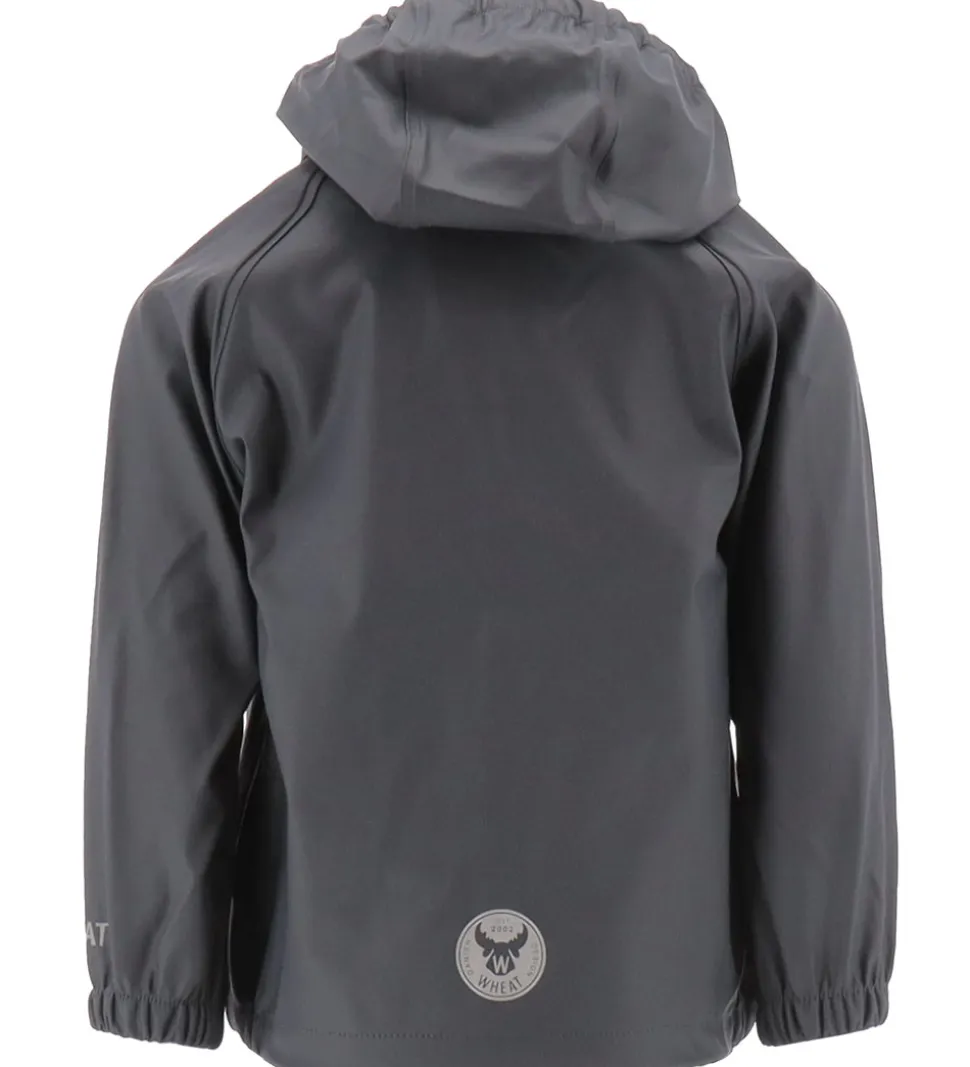 Wheat regnjakken har en aftagelig hætte, som sidder fast med trykknapper omkring halskraven, og den kan justeres i toppen med velcro. Ærmerne har elastikkanter, og i livåbningerne har regnjakken elastikindsatser i siderne. Regnjakken åbnes med en lynlås med gummilukning og hagebeskytter, og i siderne er der praktiske, åbne lommer.