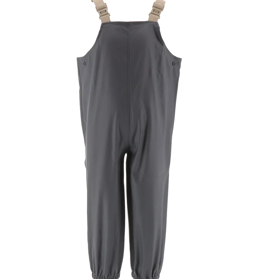 Wheat regnbukserne har beige, elastiske seler, der kan justers i længden, og de åbnes fortil med klikspænder. Regnbukserne kan strammes ind i siderne med en trykknap i hver side. Buksebenene har elastikkanter om anklerne, og der er aftagelige, justerbare gummistropper til at sætte under fodtøjet.