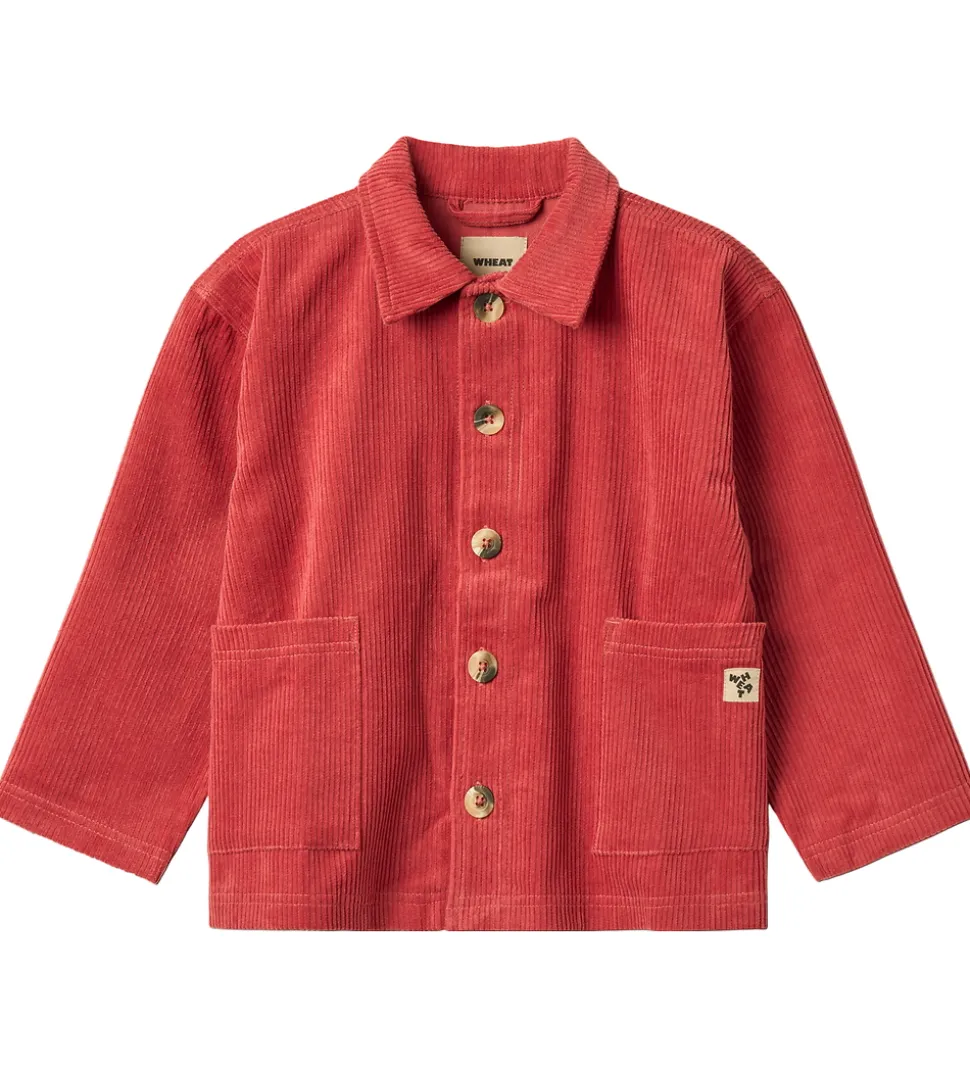 Smart Wheat skjorte i ensfarvet rødt fløjl. Wheat skjorten har lange ærmer og en klassisk krave, der giver et tidløst udtryk. Den lukkes med store knapper, og i siderne sidder der store lommer.