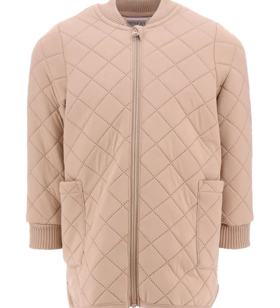 Fin Wheat termojakke i ensfarvet beige med et quiltet mønster.